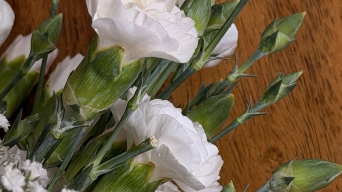 The flowers in the vases haven’t quite died;