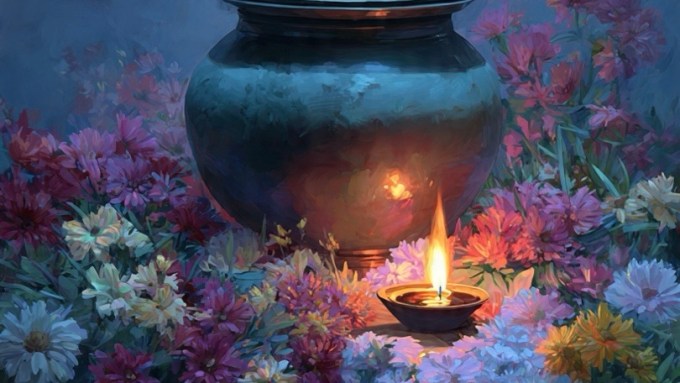 All that remains are the rituals of remembrance — a photograph, a lamp, flowers, and memories.