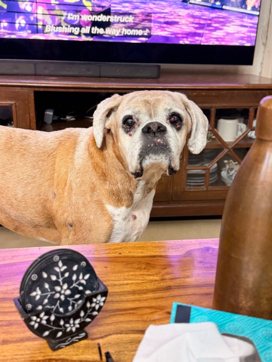 Medication complicated everything. Morphine made her dazed and unsteady, her hind legs unreliable. It wasn’t a bad reaction — she ate, she drank — but she wasn’t herself. Gabapentin added to the fog. I kept watching her, trying to tell the difference between pain, sedation, fear, and surrender. I kept questioning myself: am I helping her, or just managing my own fear?