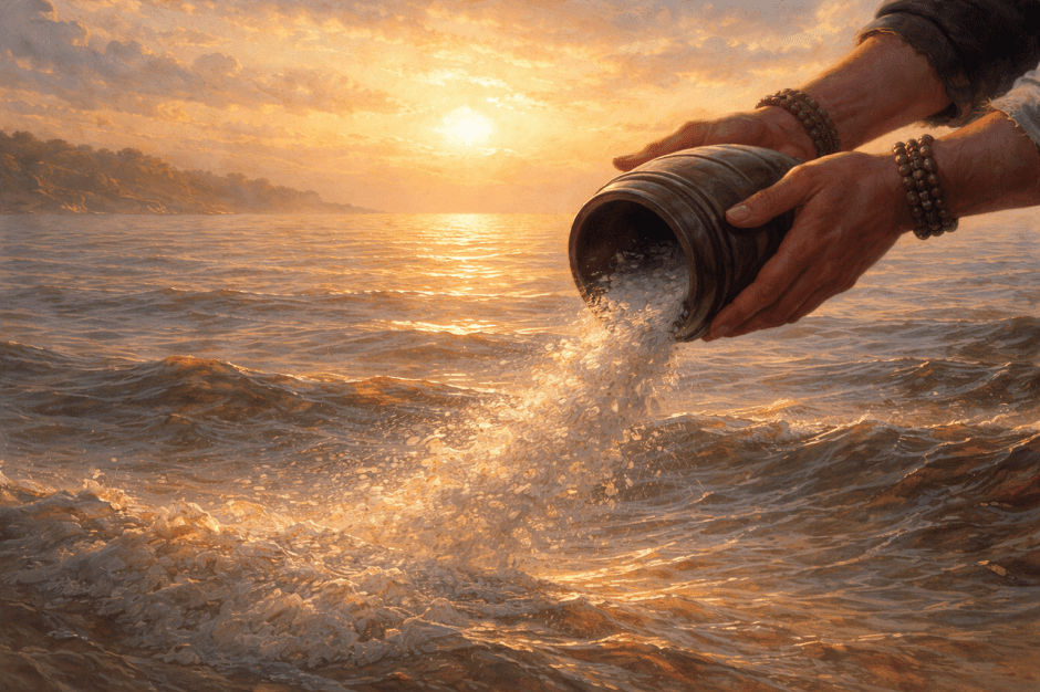 Not the absence of grief, but the presence of something deeper. A quiet rightness. The waves were gentle, lapping at our feet as if they were telling us of all the millions of times they had borne witness to this act. The sea understood the moment better than we did. We stood there, all of us in the water, and watched as she became part of something vast, something endless.