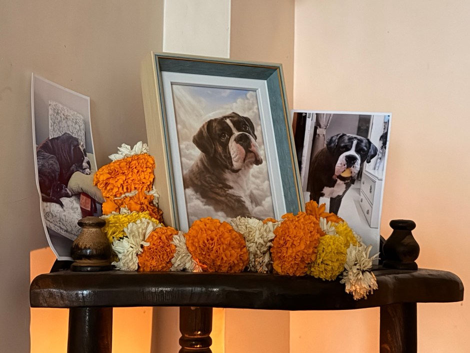 The flowers in the vases haven’t quite died;